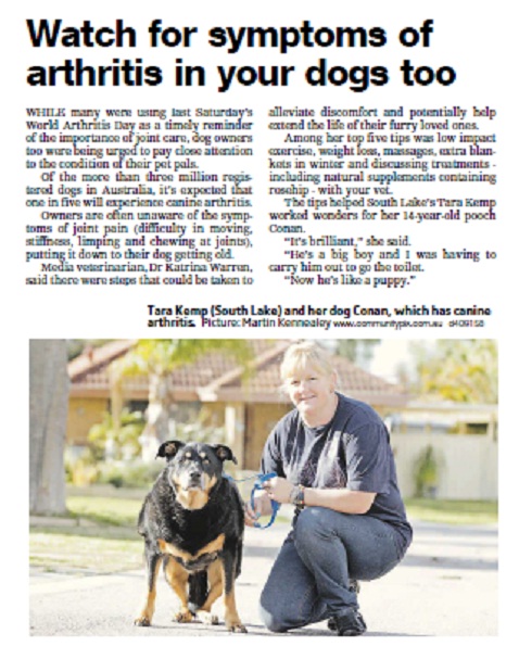Watch for symptoms of arthritis in your dogs too- Cockburn Gazette (15 October 2013)